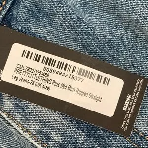 NWT PrettyLittleThing Plus Mid Blue Ripped Straight Leg Jeans Sz 24