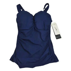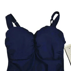 NWT Profile by Gottex Tutti Frutti D-Cup Shirred Underwire Tankini Top Navy Blue