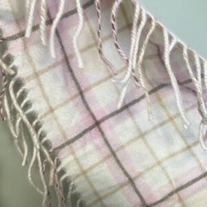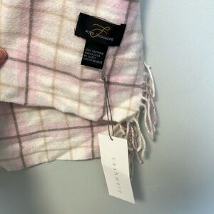 NWT Pure Cashmere Plaid Scarf with Pink and White Checkered Pattern