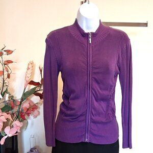NWT Purple Knit Zip-Up Open Front Cardigan Lightweight Ladies Sweater