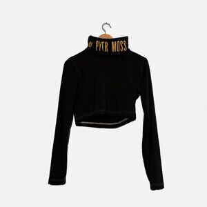 NWT Pyer Moss x Reebok Cropped Logo Black Turtleneck Embroidered Mock Tee Top