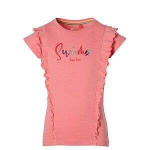 Charming summer set featuring a playful pink top with ruffle detailing and a colorful 'Summer' print. Paired with a navy blue skirt adorned with a vibrant geometric pattern with lurex and ruffled hem, this outfit is perfect for sunny adventures. The top’s soft design and the skirt’s elastic waist ensure comfort and style for any occasion.