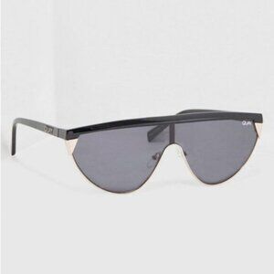 NWT Quay Australia Goldie black and gold frame tinted black shield lens sunglasses