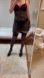 Black & red lingerie in sheer black and red satiny fabric. Form fit padded bust covered in black lace, adjustable straps, adjustable eye and hook back closure offer a full view of the back. The piece provides some coverage for hips & belly while emphasizing the bust, back & legs with the high low cut of the bottom skirt.