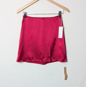 NWT REFORMATION Robbie 100% Silk Skirt Rhubarb Pink Slit 0