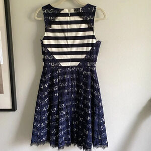 NWT RW&Co Cotton Blend Nautical Lace Striped Navy & White Cocktail Dress Size 6
