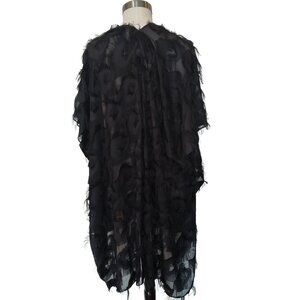 NWT Rachel Roy Black Textured Eyelash Fabric Kimono Cardigan Coverup One Size