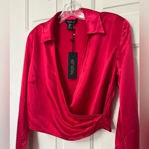 NWT Rachel Zoe Hot Pink Satin Drape Blouse M