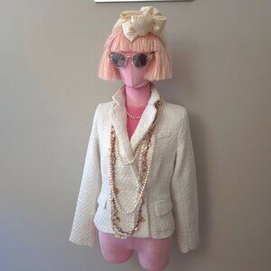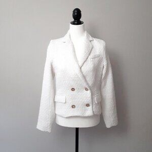 NWT Rachel Zoe white double breasted tweed like cropped blazer, S