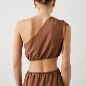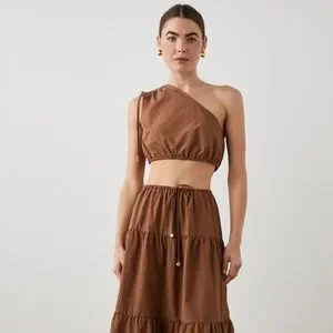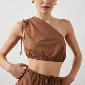 The Rails Kim Top is the perfect addition to any summer wardrobe. This ultra-cropped top features an asymmetrical silhouette and ruched ties on the shoulder sleeve. The versatile neutral shade pairs well with a variety of bottoms, making it a must-have for any summer outfit. Pair with the matching Mary Skirt to complete the look.