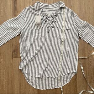 NWT Rails Matea Canela Stripe Linen Blend Lace Up Shirt Blouse Small