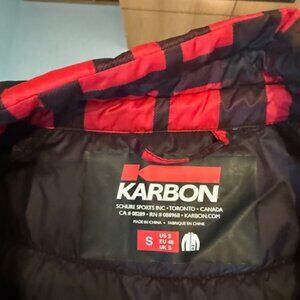 NWT never worn Ladies red and black plaid Karbon ski shell, size S. Super comfortable, great layering piece for skiing or other outdoor activity like snowshoeing or hiking. Could also wear as a light fall jacket. Made with Thermore insulation technology. Has Georgian Peaks Club insignia near bottom right pocket/hem (as shown in photo).