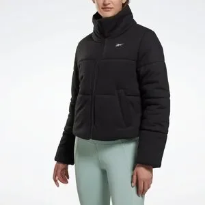 You're not one to miss a yoga class just because of the weather. This women's Reebok puffer jacket makes it a little bit easier. Its high collar and close fitting hem keep you covered against chill breezes. Warm padding insulates you from the cold.