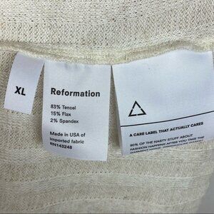 Reformation Pippy Top in Natural and Women's Size XL. Sweetness and spice come together in a form-fitting top cut in a soft, stretchy linen-kissed blend. Sweetheart neckline. Sleeveless. 83% tencel, 15% linen and 2% spandex. Made in the USA. Brand new with tags! No flaws.