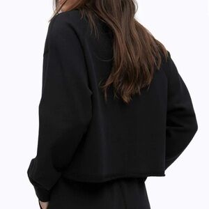 A boxy fit cropped crewneck handcrafted from signature lightweight Terry. This style features extra-long staple Pima cotton for a supple feel and ideal drape. Details include a raw cut him, extended drop shoulders, durable cotton rib and smooth flatlock seams.