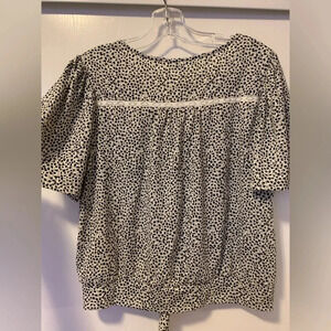 Reitman’s blouse, short sleeved with tie at waist. Cropped style