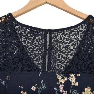 NWT Reitman's Elastic Waist Printed Dress With Crochet Inserts Navy Blue Large