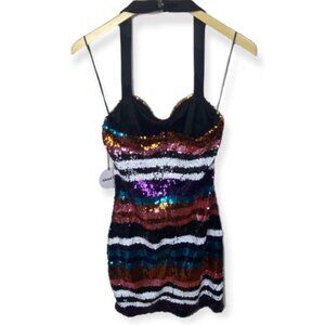 NWT Revolve About Us Zoey Sequin Striped Mini Dress Size Small New With Tags S