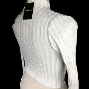 New with Tags in its original packaging. Women's White/Cream Long Sleeve Ribbed Short Top. Has some stretch. 78% Rayon, 22% Nylon Polyamide.