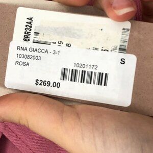 NWT Rinascimento Pink tie waist black buttoned coat four pockets SP
