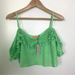 NWT River Island Tassel Detail Beach Cold Shoulder Crop Top Sz S