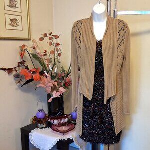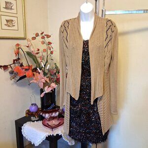 NWT Robert Kitchen Women’s Beige Lightweight Long Sleeve Crochet Knit Cardigan Chic Sweater Coat Size M fit for 8 or 10