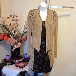 NWT Robert Kitchen Women’s Beige Lightweight Crochet Knit Cardigan Chic Sweater