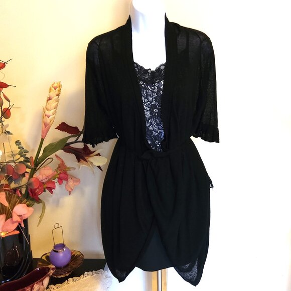 NWT Robert Kitchen Women’s Black Lightweight Short Sleeve Knit Cardigan M 8 10