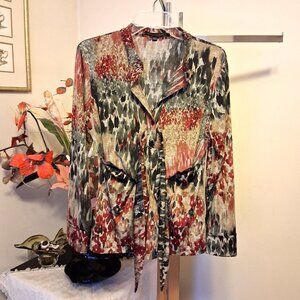 NWT Robert Kitchen Women's Burgundy Black Beige Printed Blouse Size 10 M
