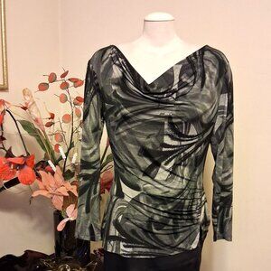 NWT Robert Kitchen Women's Gray Black Printed Blouse Long Sleeve Top Well Design Tailored Spring Fall Blouse Tops Size M could fit for 10