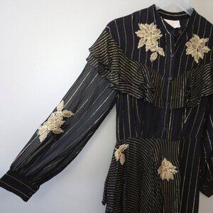 NWT Rococo Sand black & gold metallic fibre floral embroidered maxi dress, S