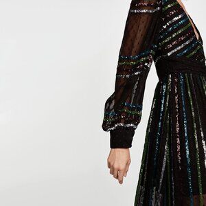 NWT Rococo Sand Prism black & multicolour sequin & polka dot maxi dress