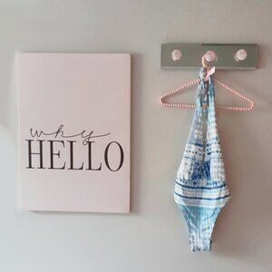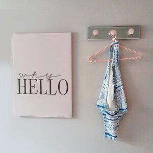NWT Rococo Sand printed blue & white beaded accent halter one piece swimsuit