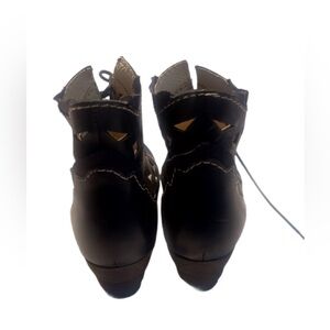 NWT Rovers Black Leather Steampunk Bohemian Trend Coachella Cutout ankle boot 37
