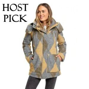 NWT Roxy grey / mustard yellow patterned insulated hooded jacket