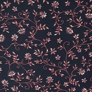 Dark Ink blue/black background with small all over floral pattern in shades of dusty tea pink and cream