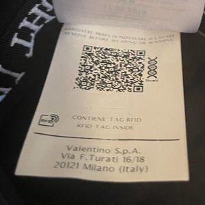 Valentino QR code is attached to the care label