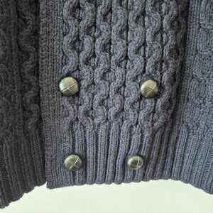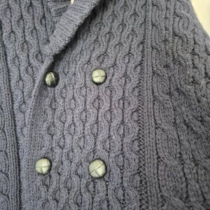 NWT SAOL Ireland Merino Wool Navy Shawl Collar Irish Aran Cardigan Sweater XXL