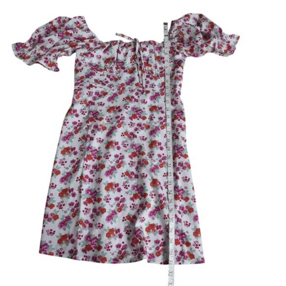 New with tags NWT SBetro Floral Mini Dress White Pink Ditsy Ruffle Sleeves