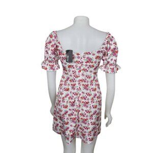 NWT SBetro Floral Mini Dress White Pink Ditsy Ruffle Sleeves Size Small