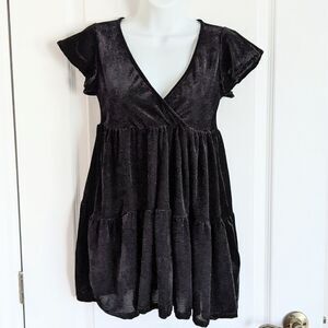 NWT SEE YOU MONDAY Black velvet tiered V-neck mini dress Small @L1