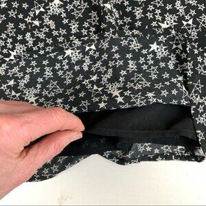 Beautiful high neck sleeveless top. Black with star design and 2 button closure at the back of the neck Picture number 5 shows there is a black camisole lining.