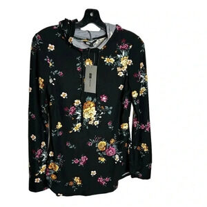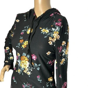 NWT SM & MED 🇨🇦 women s black hoodie. With colorful flowers,super lightweight