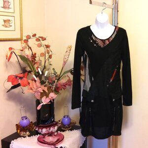 NWT SOGGO Paris Unique Designed Black Stretchy Cardigan Knit Sweater Dress M