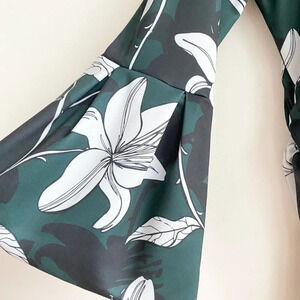 NWT SOON Maternity Floral Green White Tulip Sleeve Midi Dress L