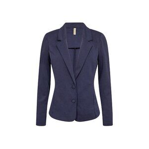 Stylish navy blue SOYA CONCEPT Daniella blazer made from stretchy and comfortable fabric. Features a two button closure and pockets.