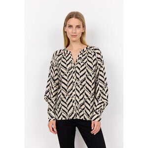 This SOYA CONCEPT Inarose blouse features a stylish black and cream print and a button down design. Elevate your wardrobe with this versatile and fashionable top.