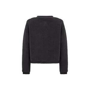 ONYX is a Jacket crafted from 100% recycled polyester. This elegant jacket features a textured surface, button detailing with floral embellishments, and a round neckline for added sophistication.