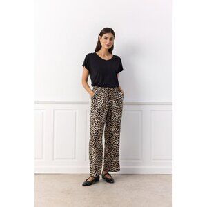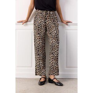 PIETTA Pants are made from 100% ECOVERO Viscose for a comfortable fit. These pants include an elastic waistband, a tie-front detail, and an leo print.