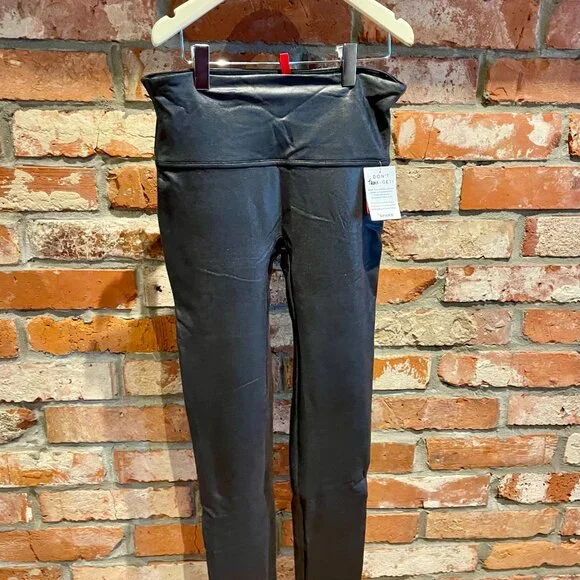 Faux Leather that flatters. This best-selling style features sleek, smoothing faux leather fabric that shapes and lifts and our contoured Power Waistband for core compression.